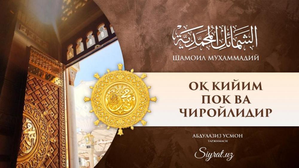 «Расулуллоҳ соллаллоҳу алайҳи васаллам: «Оқ кийим кийинглар, чунки у пок ва чиройлидир. Ўликларингизни ҳам у билан кафанланг», дедилар».
