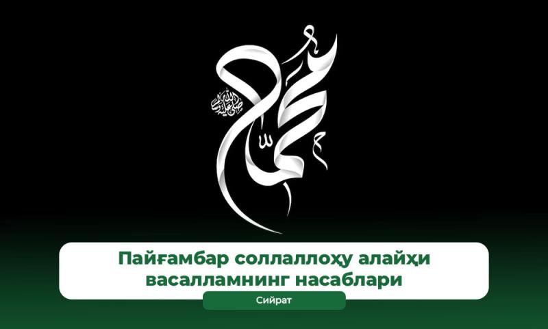 «Набий соллаллоҳу алайҳи васалламнинг насаблари келсак, у зот – Муҳаммад соллаллоҳу алайҳи васаллам ибн Абдуллоҳ ибн Абдулмуттолиб ибн Ҳошим ибн Абдуманоф ибн Қусой ибн Килоб ибн Мурра ибн Каъб ибн Луъай ибн Ғолиб ибн Феҳр ибн Молик ибн ан-Назр ибн Кинона ибн Хузайма ибн Мудрика ибн Иляс ибн Музар ибн Низаар ибн Маъдд ибн Аднан».