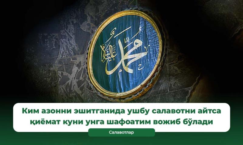 «Расулуллоҳ соллаллоҳу алайҳи васаллам: «Ким азонни эшитганида: «Аллохумма! Робба ҳазиҳид даъватит таамма, вассолатил қоима, аати Муҳаммаданил васийлата вал фазийла. Вабъасҳу мақомам Маҳмуданиллазий ваъадтаҳу», деса, қиёмат куни унга шафоатим вожиб бўлади», дедилар».