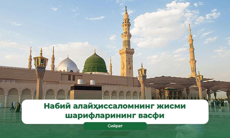 «Расулуллоҳ соллаллоҳу алайҳи васаллам одамларнинг энг гўзал юзлиси, бўй-басти энг гўзали эдилар, жуда новча ҳам, пакана ҳам эмас эдилар».